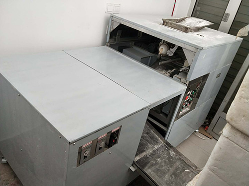 RJZ- 1燒餅劑子揉搓機是模仿人的兩個手掌揉搓劑子的過程而設計制造的。它包括螺旋擠出系統,光電控制切割系統、自動輸送面粉系統、轉筒內劑子粘面粉滾圓系統、上下轉盤揉搓劑子系統、拖帶式劑子拖出系統等。
